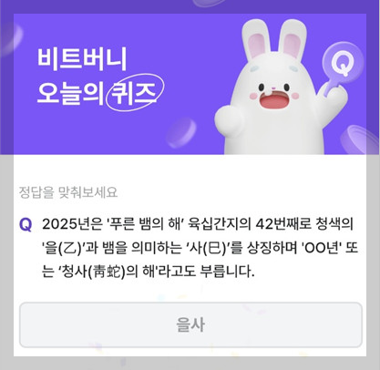 "2025년은 '푸른 뱀의 해' 육십간지의 42번째로 청색의 '을"과