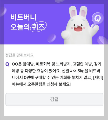 선별OO 5kg을 비트버니에서 0원에 구매할 수 있는 기회를 놓치지 말고, [재미]메뉴에서