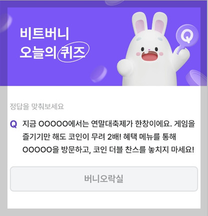 "지금 OOOOO에서는 연말대축제가 한창이에요. 게임을 즐기기만 해도 코인이 무료 2배!