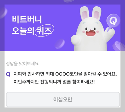 "지피와 인사하면 최대 OOOO코인을 받아갈 수 있어요.
