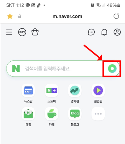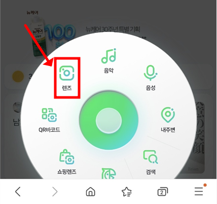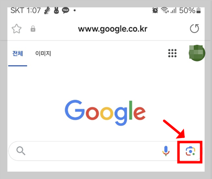 - 검색창 우측의 스마트렌즈 아이콘(카메라 모양)을 클릭합니다.