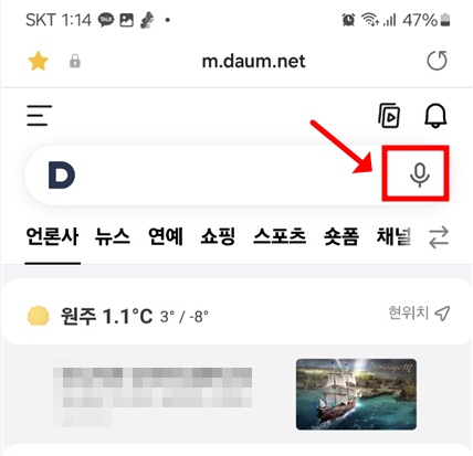 - 구글 플레이스토어 또는 애플 앱스토어에서 ‘Daum’ 앱 설치