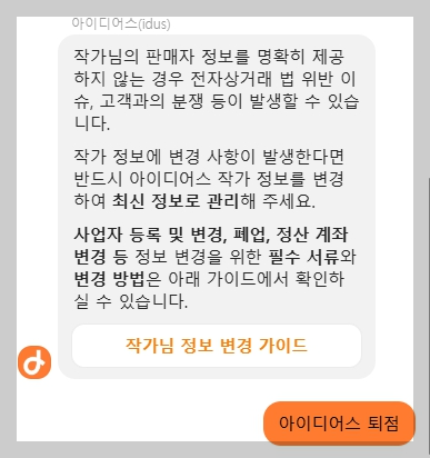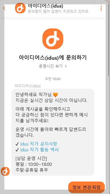 아이디어스 퇴점은 무조건 작가웹 채팅상담을 통해서만 신청 가능합니다!