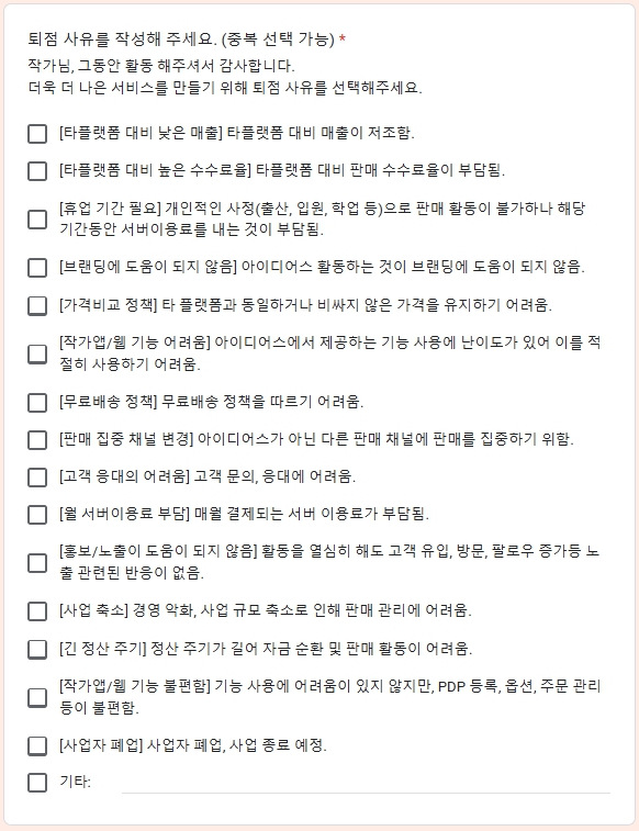 Q5. 아이디어스 퇴점 사유는 어떻게 선택하나요?