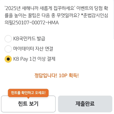 정답 : KB Pay 1건 이상 결제