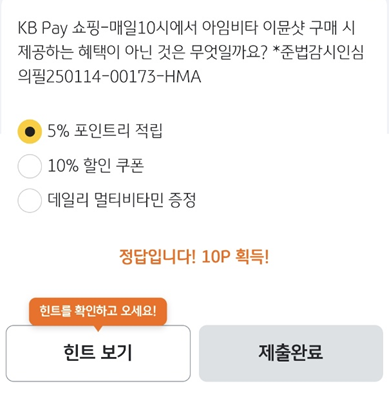 "KB Pay 쇼핑 -매일10시에서 아임비타 이뮨샷 구매 시 제공하는 혜택이