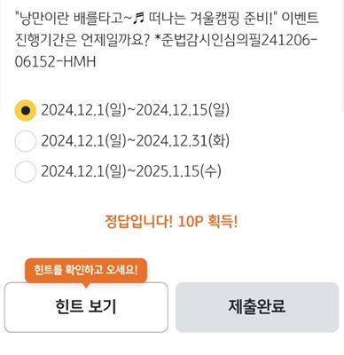 ""낭만이란 배를 타고~ 떠나는 겨울캠핑 준비!" 이벤트 진행기간은 언제일까요?
