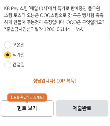 "KB Pay 쇼핑 '매일 10시'에서 특가로 판매중인 풀무원 스팀 토스터 오븐은