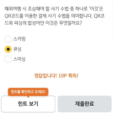 의미합니다. QR코드와 피싱의 합성어인 이것은 무엇일까요?"