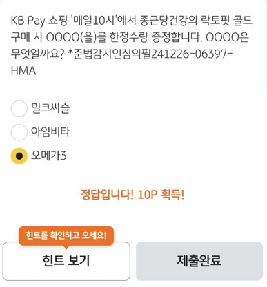 KB Pay 쇼핑 '매일10시'에서 종근당건강의 락토핏 골드 구매 시 OOOO(을)를