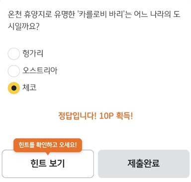 "온천 휴양지로 유명한 '카를로비 바리'는 어느 나라의 도시일까요?"